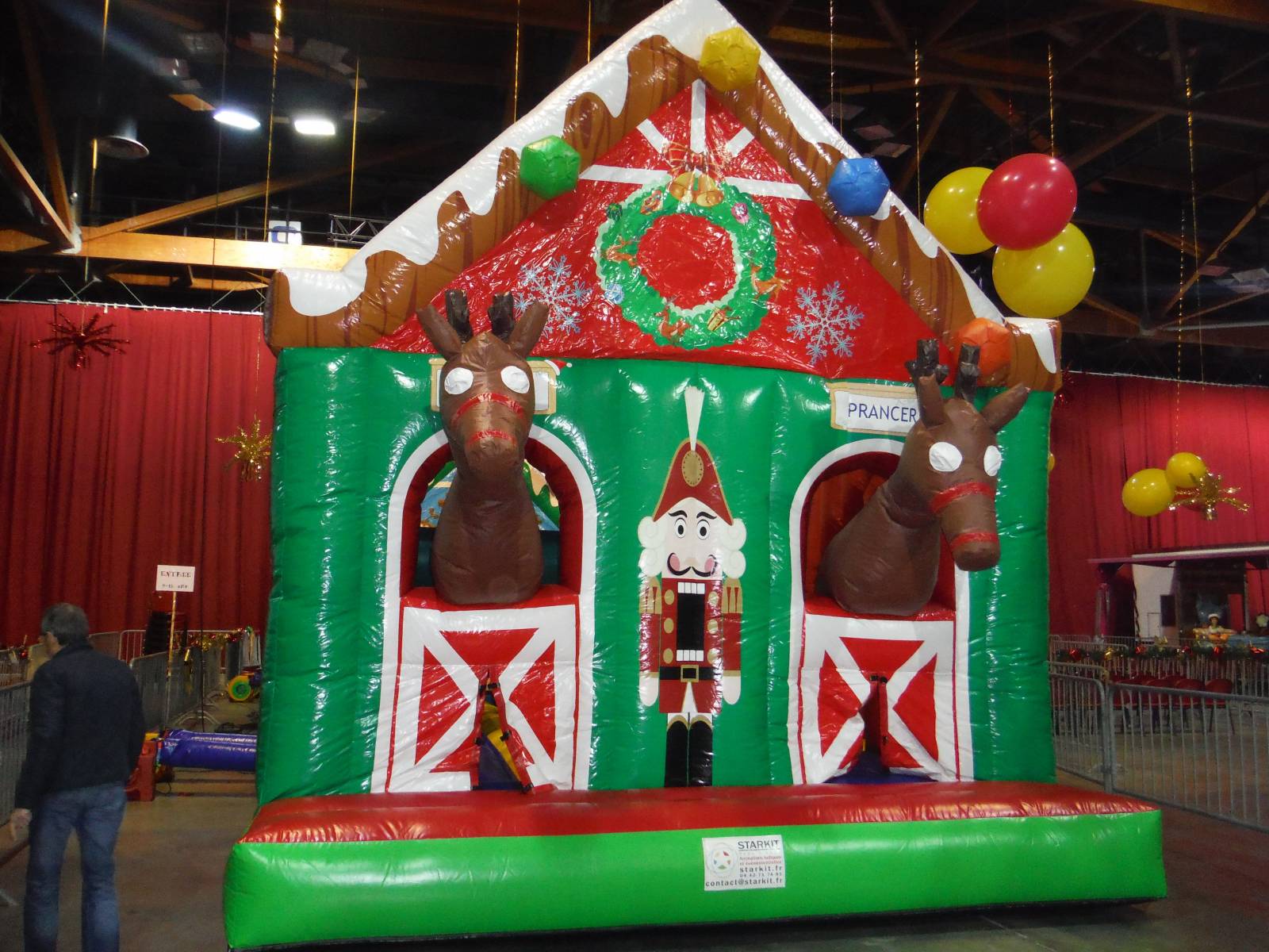 Avec ce château gonflable hors norme unique en France, vos enfants seront transportés dans le monde magique du père Noël ! à l'intérieur, ils pourront courir, sauter, s'amuser, escalader pour accéder au super toboggan, se faufiler dans les tunnels en regardant les supers décors de cette structure gonflable (casse noisette rennes bonhomme de neige et bien sûr le Père Noël). Bien évidemment le parcours de Noël peut être proposé seul ou être intégré a une kermesse que nous pouvons vous préparer sur mesure avec des animations annexes comme par exemple d'autres châteaux gonflables thématisés Noël que vous pouvez consulter sur notre site ou des atelier créatifs de Noël avec fabrication de décoration de Noël (boule de Noël pour sapin, santons de Noël etc…). Nous pouvons aussi vous proposer de monter un décor de Noël avec possibilité de faire venir le personnage préféré des enfants : LE PERE NOËL. Le parcours de Noël sera bien évidemment installé et désinstallé par nos soins et sera encadré par un animateur qui veillera au bon déroulement de l'animation durant votre arbre de Noël.. Pour consulter l'ensemble de nos prestations de Noël, nous vous invitons à consulter notre catalogue en ligne. Nous sommes à votre disposition. N'hésitez pas à nous joindre en remplissant le formulaire.