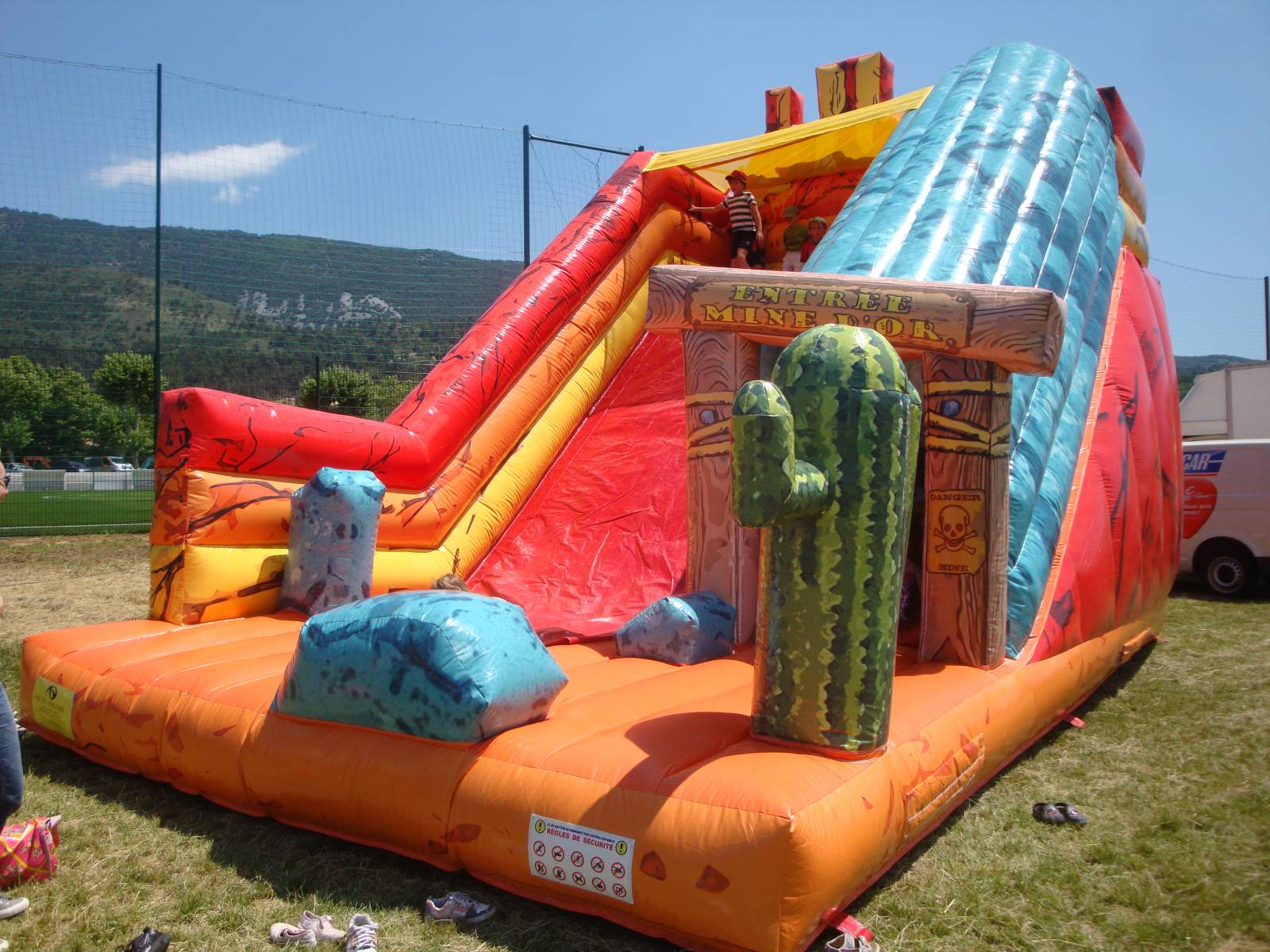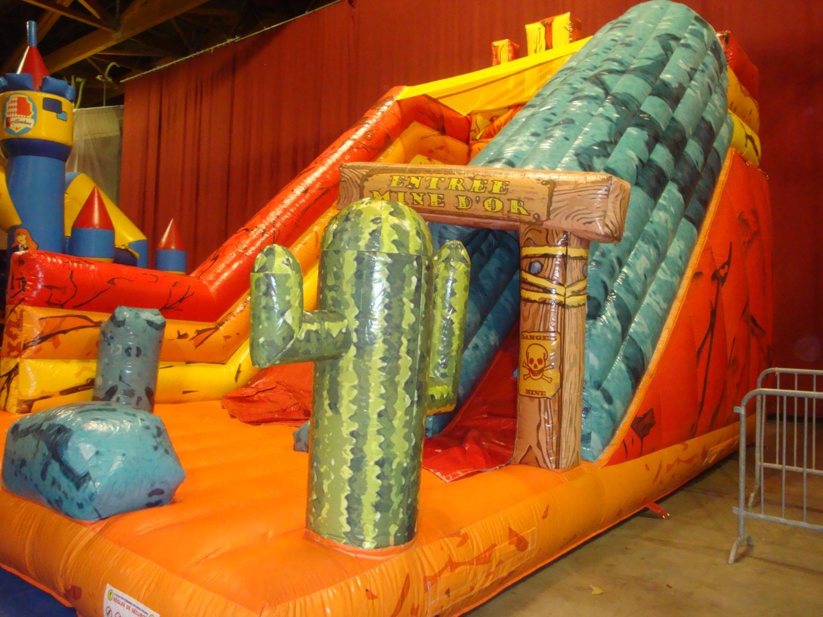 Le toboggan mine d’or sera idéale pour un thème sur le Western, ou pour une fête estivale, vous pourrez l’associé a nos structures gonflables